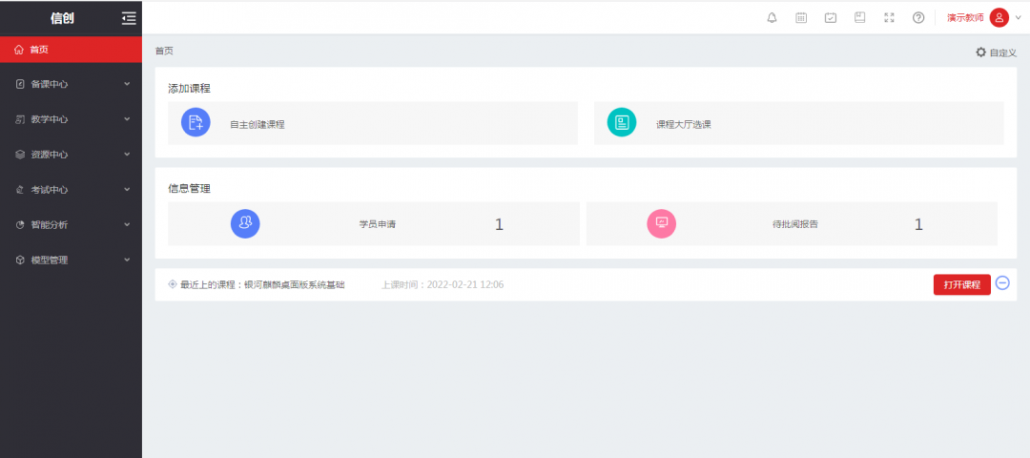 普開數據信創實訓平臺,提供教師、學生、管理員、科研等多種角色。打通課前、課中、課后全教學場景,融合備課、遠程教學、綜合考試、教學行為分析、學習行為分析、實驗報告、實操訓練等豐富功能。平臺提供包括:金山辦公、達夢數據庫、人大金倉數據庫、各類中間件、麒麟系統、交叉編譯等不同廠商的技術實訓內容,同時也包含大量產業應用案例。平臺的實訓素材包含配套的實驗手冊、教學視頻、教學PPT等素材。