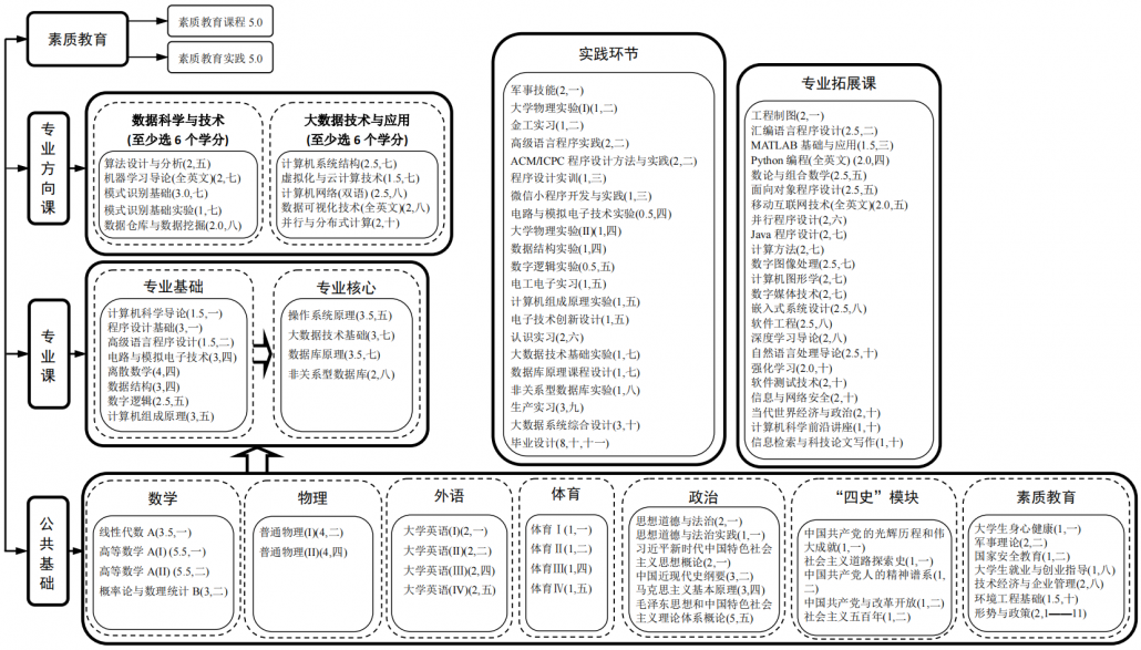 隨著學(xué)校在數(shù)據(jù)科學(xué)與大數(shù)據(jù)技術(shù)專業(yè)培養(yǎng)方面的招生模式、大類合并等相關(guān)工作的不斷調(diào)整,北化工也相應(yīng)地不斷調(diào)整、完善培養(yǎng)模式,并通過課程體系建設(shè)、實(shí)踐條件建設(shè)等貫徹專業(yè)培養(yǎng)理念。